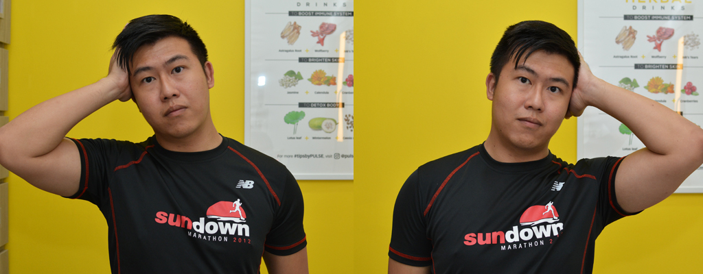 (Do note there should be minimum visible tilting of the head) - Hold this isometric contraction for 15 seconds and switch sides.