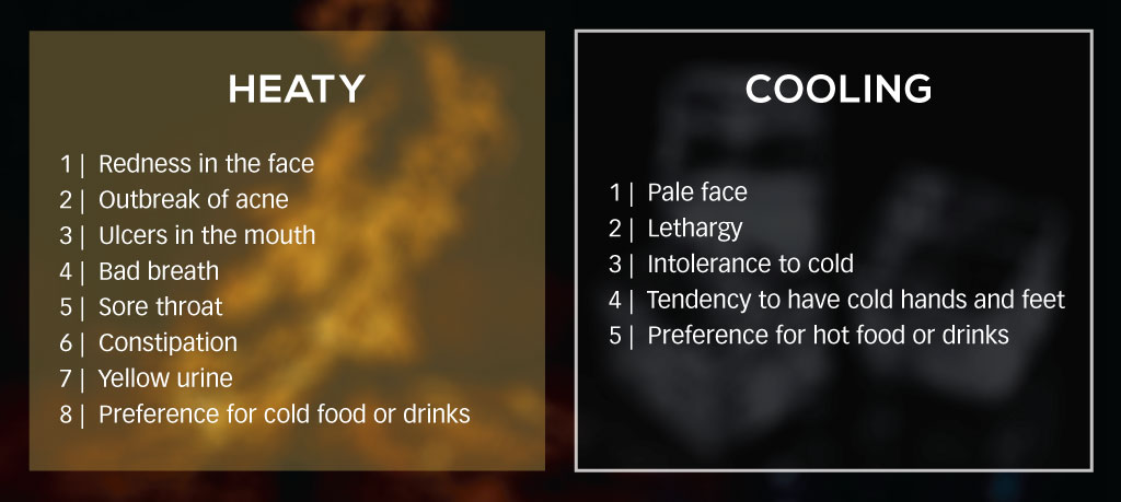 There are two types of factors that contribute to ‘heatiness’ and ‘coldness’ – external and internal.