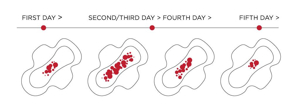 • On average, a normal flow is suggested to be about 50ml to 80ml per menstruation period. Heavier flows can be expected on the first few days and it gets lighter with spotting as the period ends.