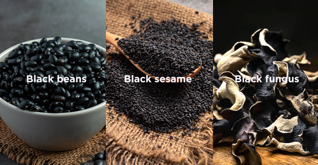 Kidney Deficiency: Black beans, black sesame, black fungus