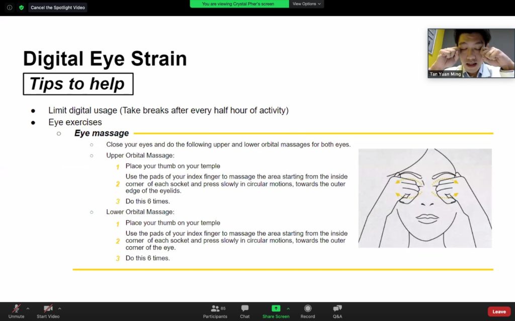 In this talk, our physicians introduced these phenomena with strategies to cope with stress and acupressure exercises to relieve mild pain. We also talked about the TCM therapies for the treatment of severe or chronic pain..