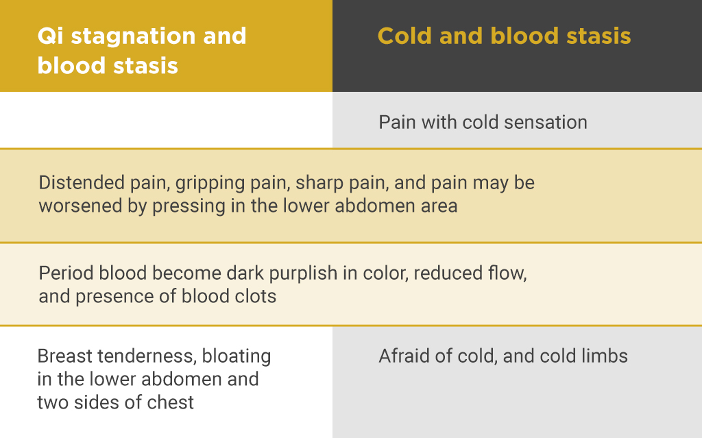 From a TCM perspective, menstrual cramps occur when there are drastic changes of Qi and blood happening in the Chong and Ren meridians (冲任二脉). Both Chong and Ren meridians are closely related to the formation of menstruation. Menstrual cramps are generally classified into deficiency (虚) and excess (实).