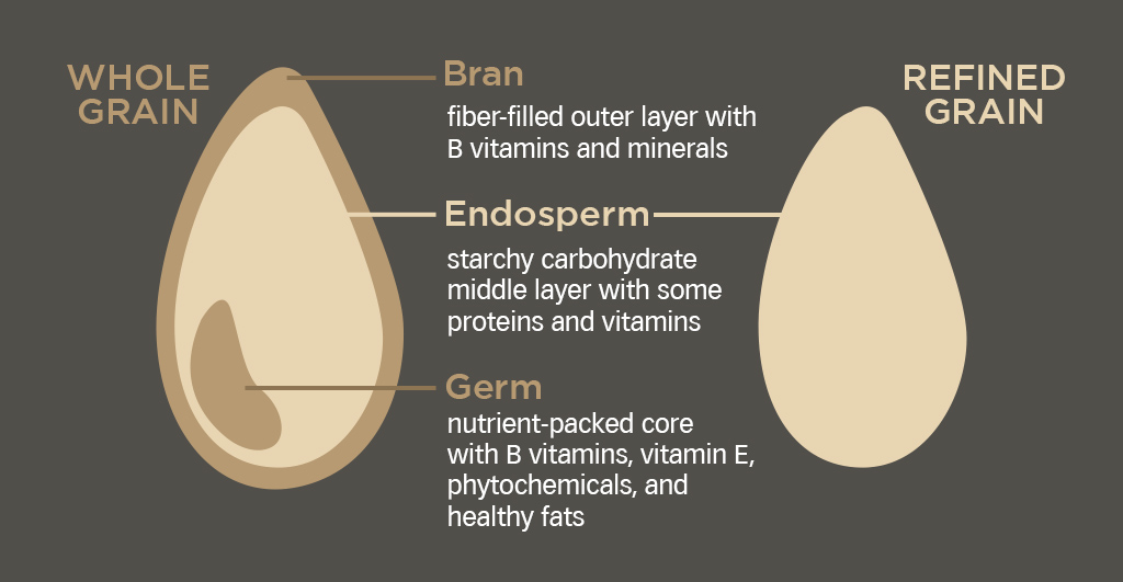 There are 3 sections to a wholegrain (as above) and each section has different benefits: